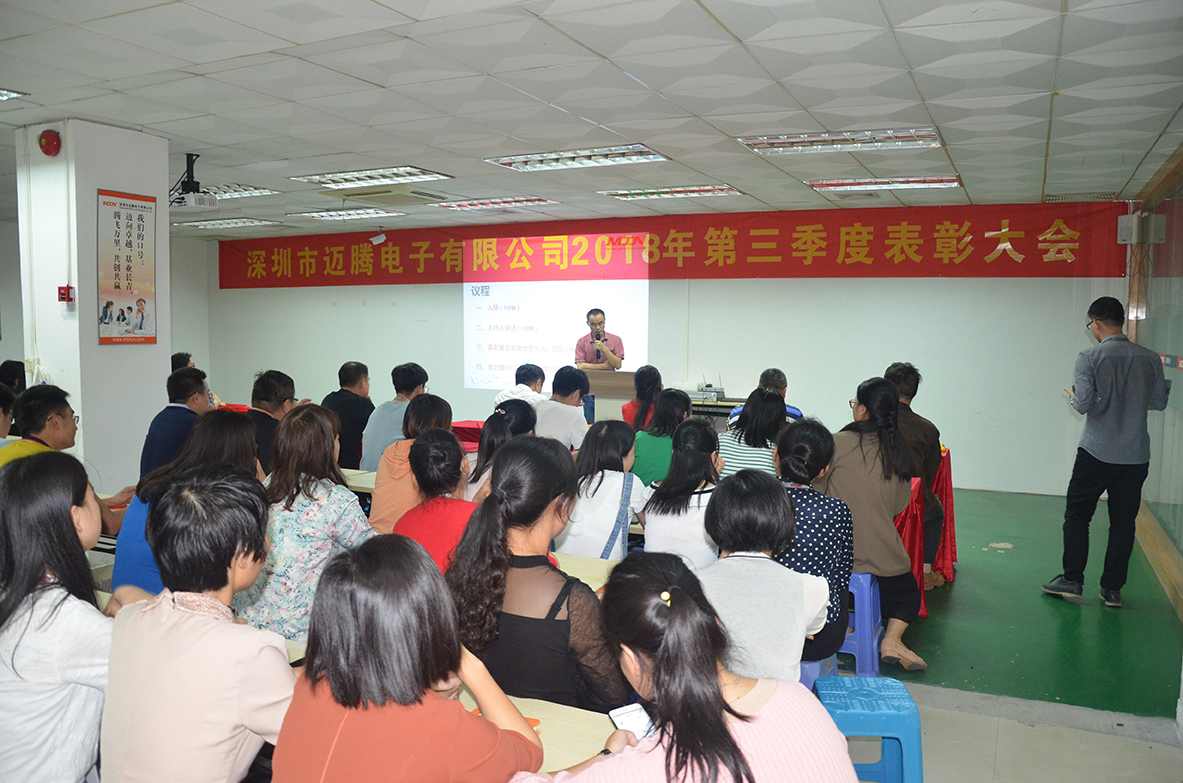 11月14日,8868体育电子2018年第三季度表彰大会在公司培训室隆重举行,深圳全体员工参加了此次会议。本次大会简要总结第三季度工作,并对优秀团队进行表彰,同时强调第四季度工作重点。